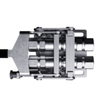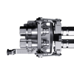 Seitlich am Stiel montierte Einheit mit fest integrierten Kupplungseinsätzen und der Hebel-Verriegelung zur schnellen, kraftarmen Betätigung.